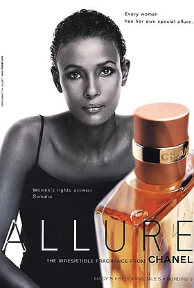 Waris Dirie: ¿Qué decir de ella? Trabajó para Chanel, Versace, Cartier y otras más. Contínuamente aparece en las pasarelas de Milan, Paris y New York. Es la primera mujer que habla en público de la mutilación genital que ella misma sufrió. Ha escrito dos libros sobre este tema basados en su propia experiencia: <> y <>. Por este último ganó el Corine Award por el libro mas vendido del año 2002!!